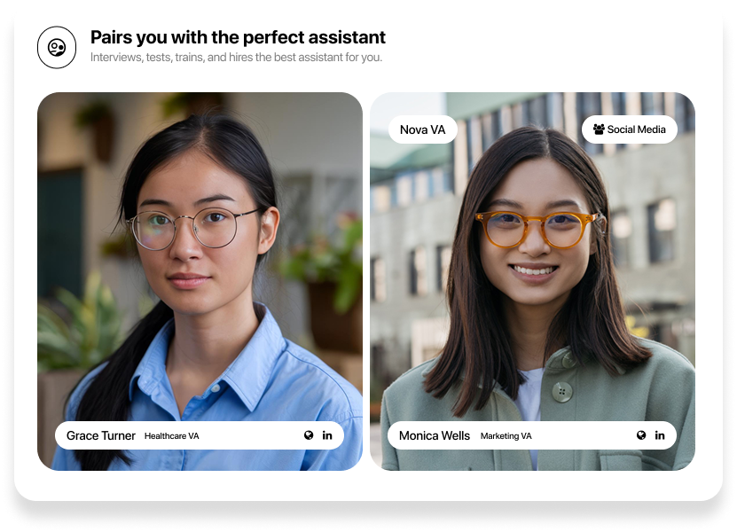 Free yourself from the busywork. Nova matches you with virtual assistants
